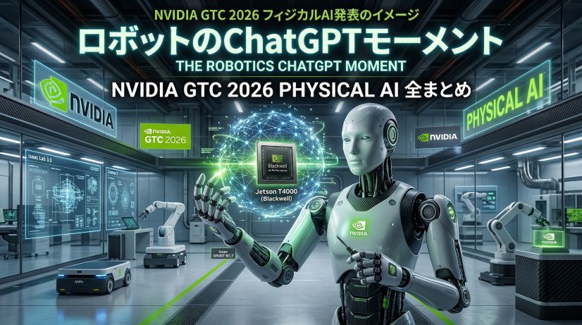 2026年3月のGTC 2026でNVIDIAがフィジカルAIの転換点を宣言。GR00T N1.7・Cosmos 3・Isaac Lab 3.0・Jetson T4000(Blackwell)の全発表をエンジニア視点で徹底解説。FANUC・YASKAWAが一斉採用した背景と、今後の世界への考察も。